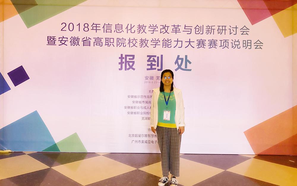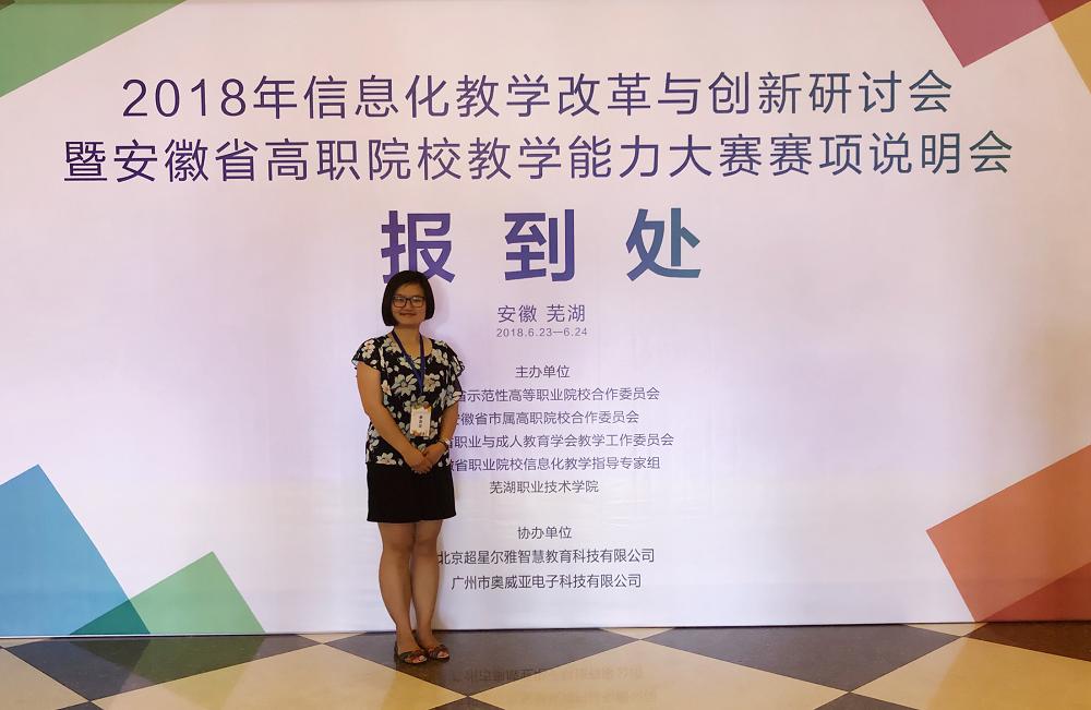 为提高教师信息化素养,提升教师教学能力,6月23日至24日,2018年信息化教学改革与创新研讨会暨安徽省高职院校教学能力大赛赛项说明会在芜湖举行。我系选派徐茹和张玲两位教师参加了此次会议。本次会议由安徽省示范性高等职业院校合作委员会、安徽省市属高职院校合作委员会、安徽省职业与成人教育学会教学工作委员会、安徽省职业院校信息化教学指导专家组、芜湖职业技术学院主办,北京超星尔雅智慧教育科技有限公司和广州市奥威亚电子科技有限公司协办。