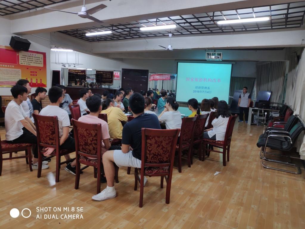 7月4日晚,在经济管理系六楼会议室,王新亮老师为17旅游管理、酒店管理专业学生作了题为《国家旅游机构历史沿革》专题讲座。讲座从旅游外事接待期、旅游业培育期、旅游产业形成期、旅游产业发展期、旅游产业成熟期讲述了我们国家旅游行政机构变化,并结合当前国家旅游行政结构改革,说明国家旅游局与文化部组建新文化与旅游部是顺应国家当前旅游经济发展形势,是文化与旅游产业深入融合的结果。通过此次讲座,学生明确了国家旅游行政结构历史沿革规律,认清了当前旅游产业发展形势,激发了学习激情,增强了就业信心。